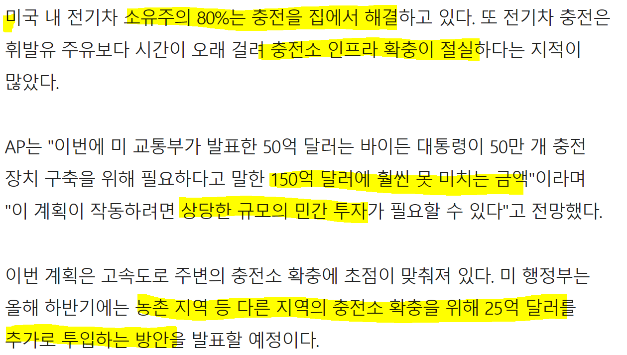 전기차 충전소 대폭 확대 나선 美…"5년간 6조원 투입" : 네이버 뉴스 (naver.com)
