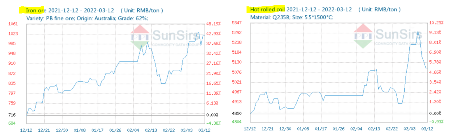 - 러시아의 우크라이나 침공에 따른 지정학적 리스크까지 겹쳐 철강 원자재 가격이 뛰자 이를 제품 가격에 반영하는 것이다.