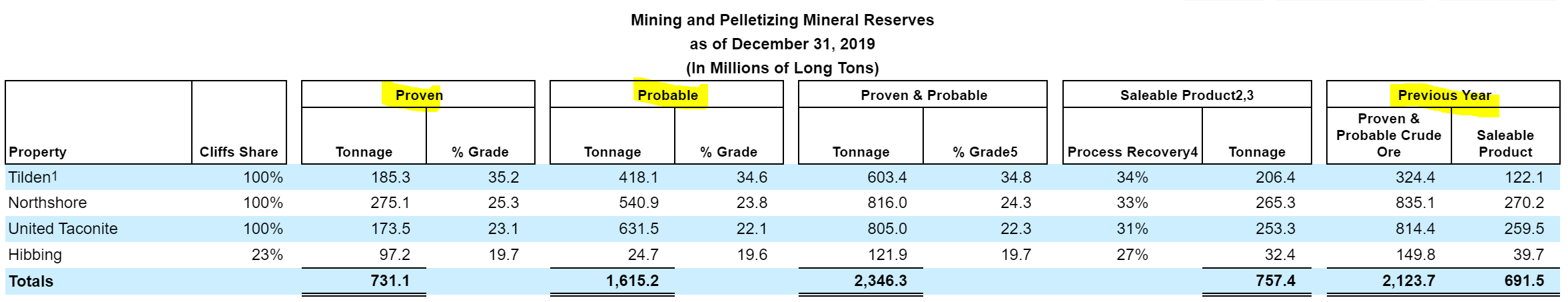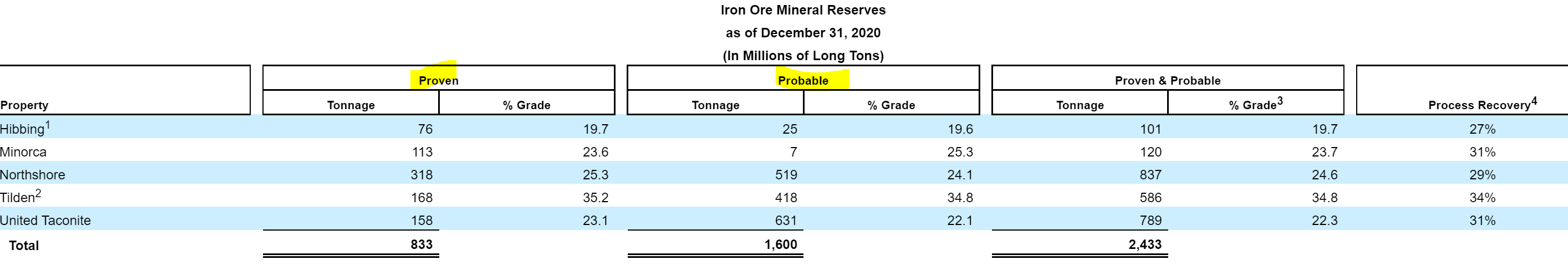 -> proven: 채굴 가능한.. 상품성이 있는 철광석